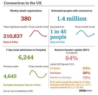 据英国国家统计局最新消息,目前伦敦、英格兰西南部、东北部、西米德兰兹郡和东南部的新冠感染人数有所上升。在截至12月9日的一周内,英国有超过140万人(四分之一)人口被感染。
