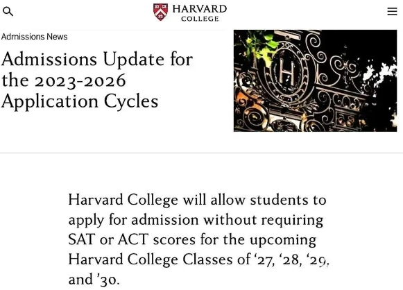 哈佛大学在三年前就确定了4年的标化政策,宣布从2023至2026申请季都执行Test-Optional标化政策。