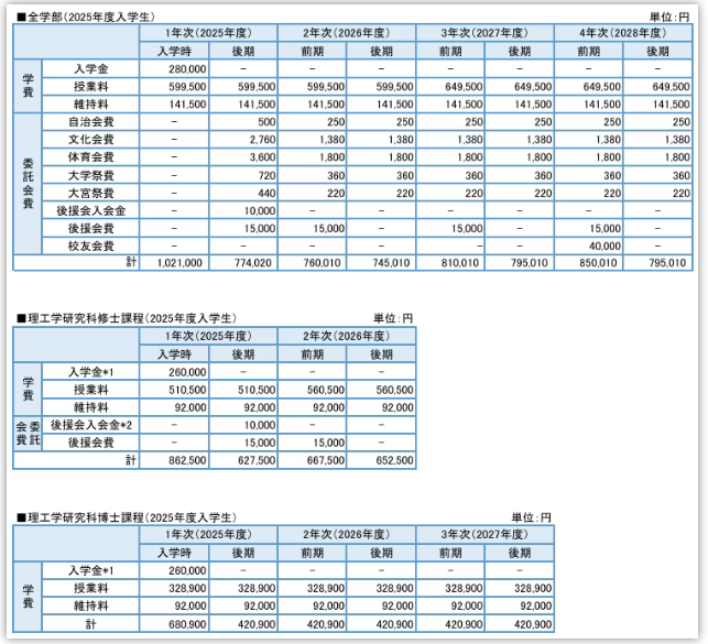 了解日本大学费用的同学都知道,私立学费>国公立学费,而私立中理工科学费>文科学费。