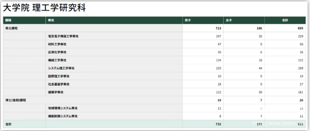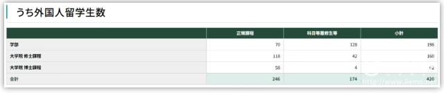上图是学校的留学生人数,就修士课程来看,每5个学生中就有1个是留学生,比例之高,可见留学生数量很多。
