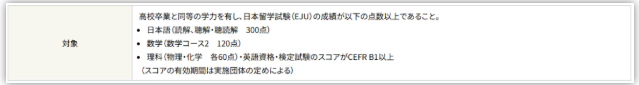 理科(物理、化学各60分)·英语资格·检定考试成绩达到CEFR B1以上