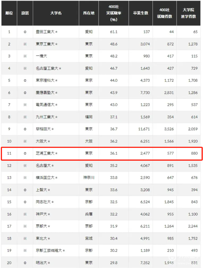 芝浦工业大学2023年就业率98.1%(日本全国平均约75%),2024年也是位列日本前11。