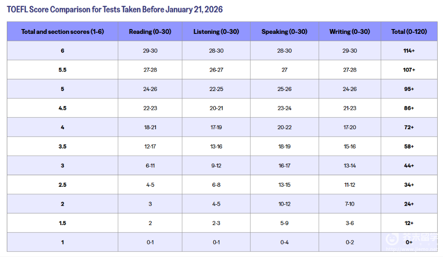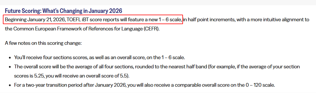 从2026年1月21日起,托福将从原120满分制改为6分满分!