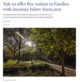 2026年1月27日,耶鲁大学官宣重磅新政一-从2026-27学年起,低收入家庭学生直接免学费,国际生无差别享受这波福利。
