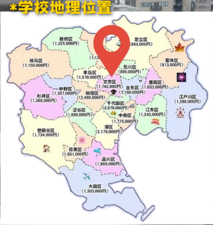 共立日语学院位于东京都文京区汤岛,这里是东京著名的“文教区”,相当于北京的学院路,教育资源极为丰富。学校周边聚集了多所日本顶尖学府: