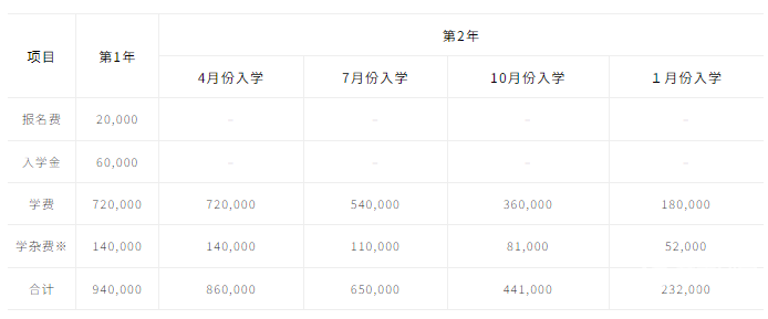 早稻田京福语学院的学费根据入学时期和入学年份有所不同。