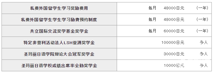 圣玛丽日本语学院设有较为丰富的奖学金体系,从校内奖学金到文部科学省奖学金均有覆盖。