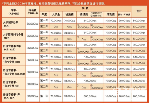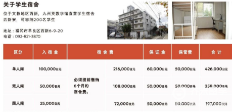 九州英数学馆国际言语学院的学费在福冈地区的语言学校中属于中等水平,远低于东京、大阪等大都市。