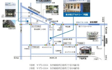 学校位于东京都板桥区,周边有3个车站可供选择,出行极为便利: