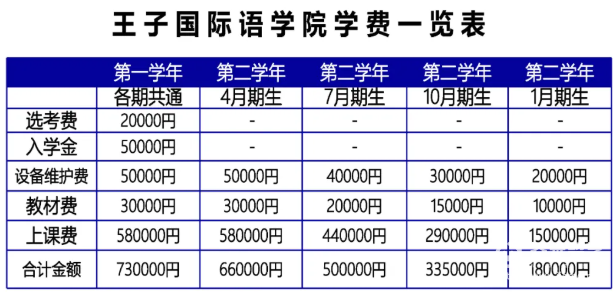 王子国际语学院的学费在东京圈的语言学校中极具竞争力,最大的优势是支持学费半年支付,有效减轻留学家庭的初期经济压力。