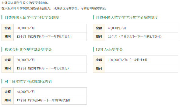 大阪四叶草学院设有较为丰富的奖学金体系,激励学习态度积极、成绩优秀的学生。