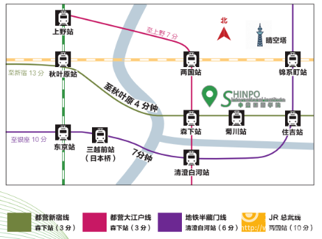 申豊国际学院坐落在东京都墨田区,是东京著名的传统与文化的腹地。校舍附近有三个电车车站,四条交通线路可选,极其方便。