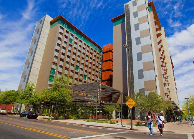 亚利桑那州立大学位于菲尼克斯市区,是一所顶尖的研究型大学,共有五个不同的校区。该校开创了美国高等教育的新模式,即让学生的优异学业与创业家精神得到了前所未有的完美结合。由于本科生人数排名全美第一,因此学校的专业设置非常广泛,并提供诸多选修课程。